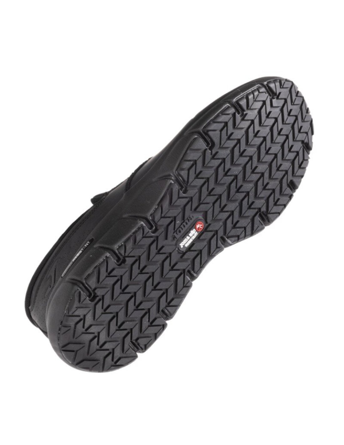 Suola SLIP RESISTANT. La finitura antiscivolo riduce il rischio di scivolamento per camminare con totale sicurezza e controllo dell'appoggio.