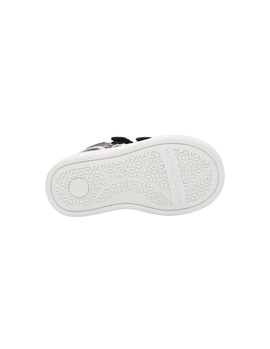 La doppia chiusura a strappo rende la calzata pratica e veloce, ideale per le più piccole. La suola in gomma bianca leggera e antiscivolo garantisce stabilità, flessibilità e sicurezza ad ogni passo.